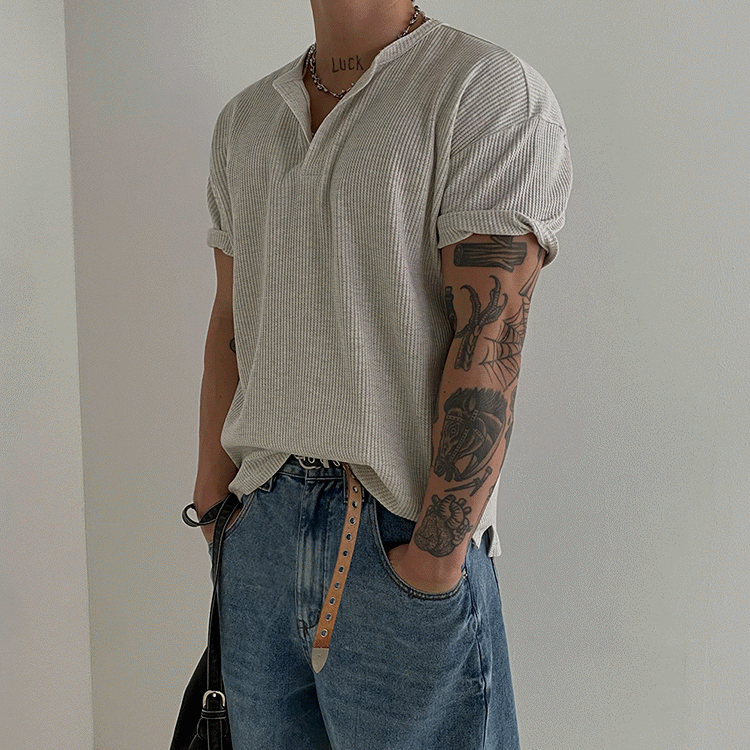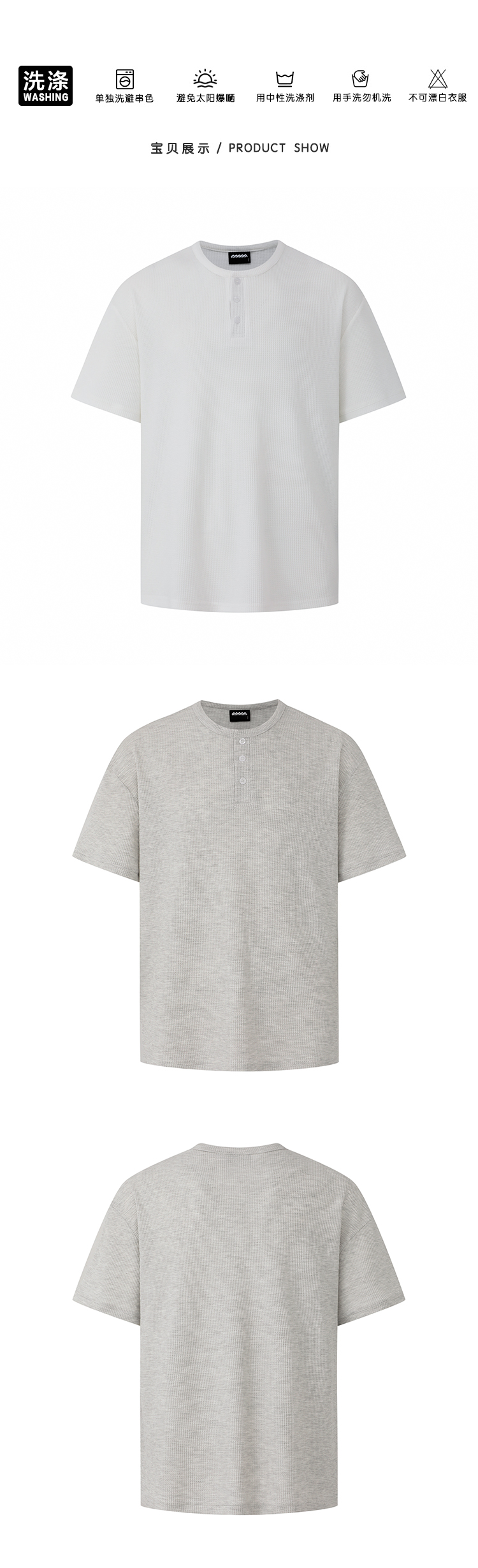 legoeduca亨利领短袖T恤男夏季寬鬆休閒通勤穿搭韓系簡約风半袖上衣