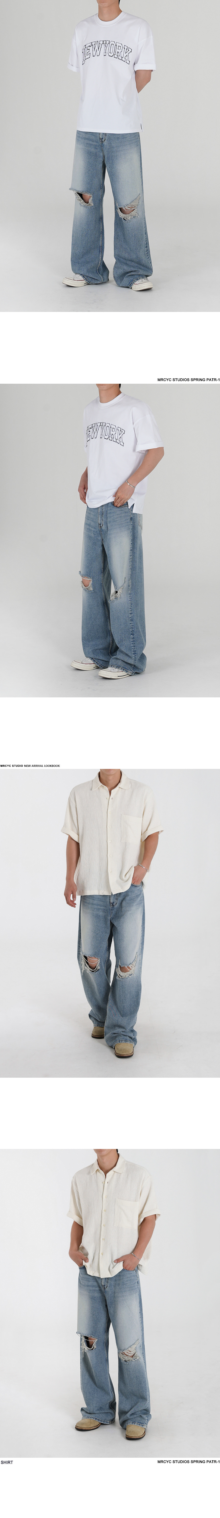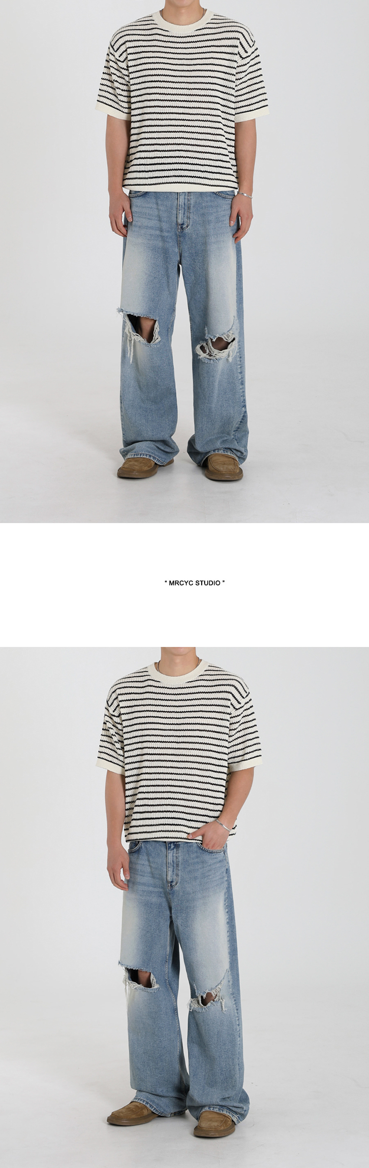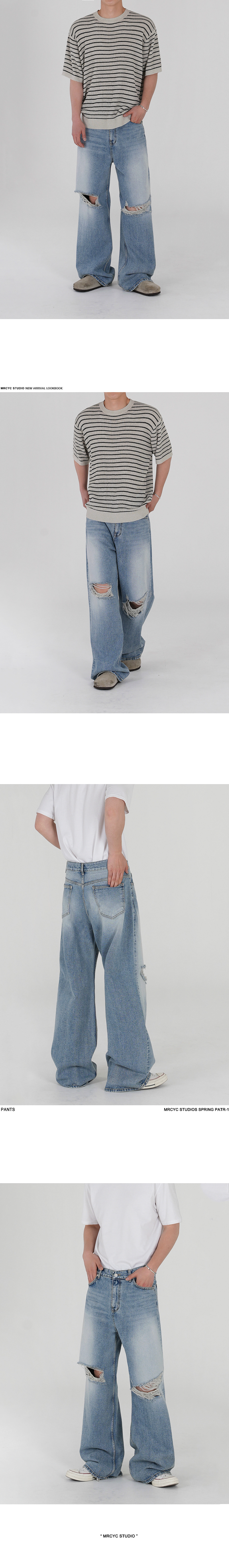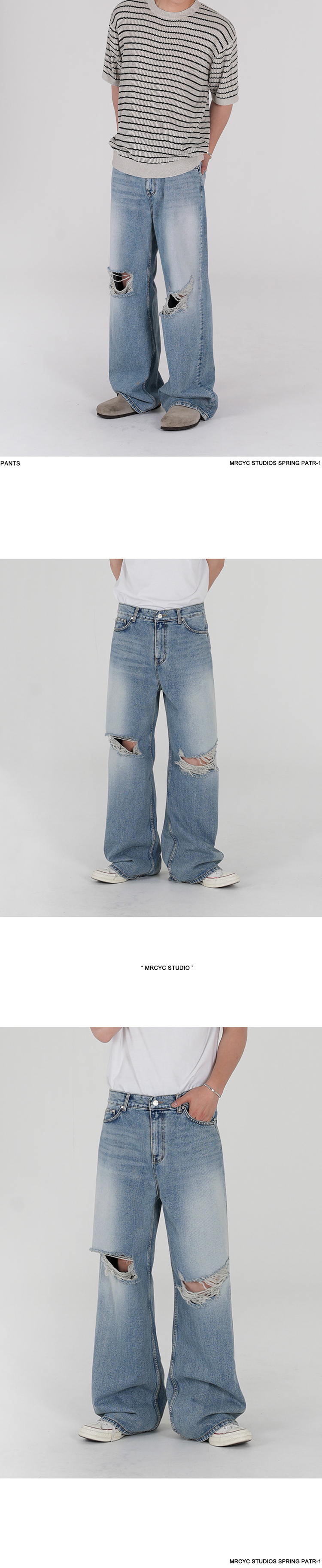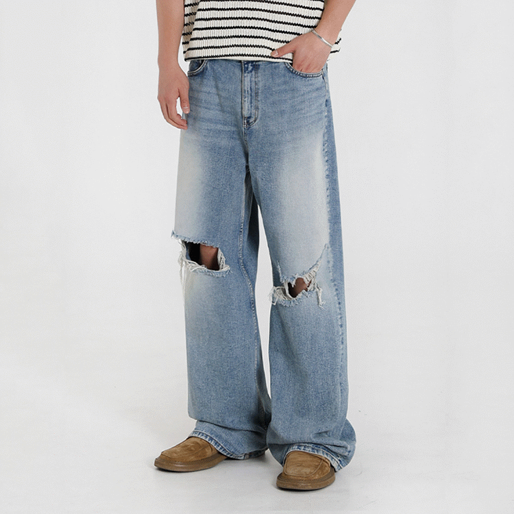 legoeduca做旧水洗破洞牛仔褲男夏季寬鬆休閒長褲韓版潮流直筒拖地褲