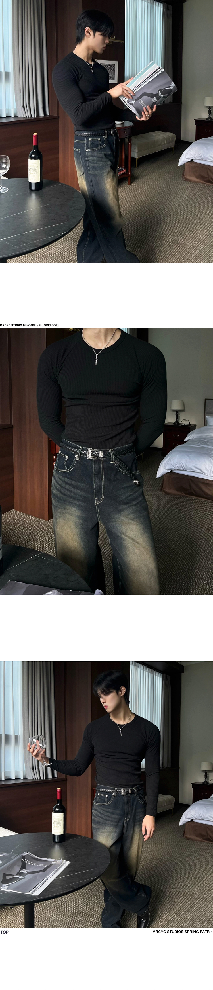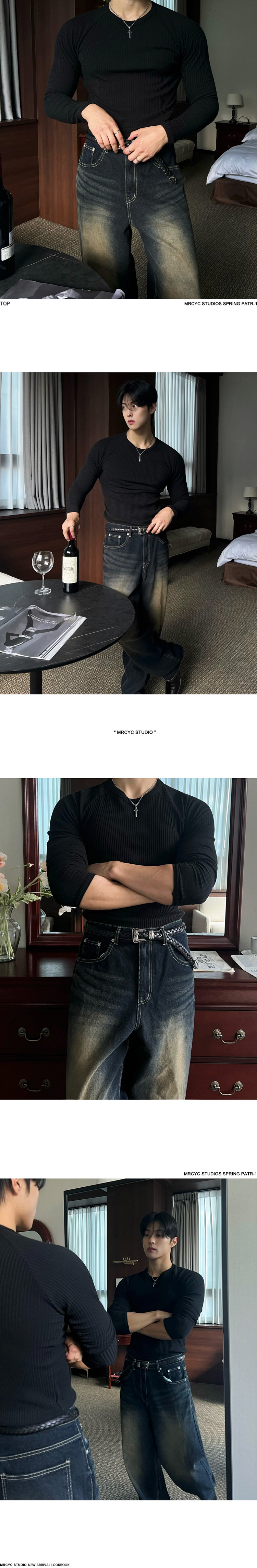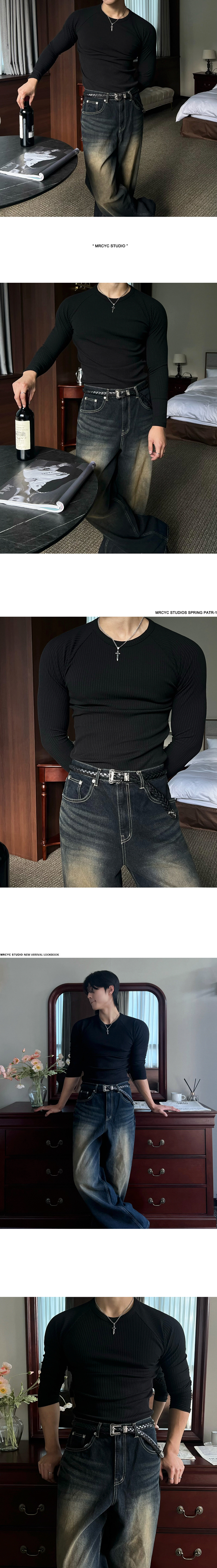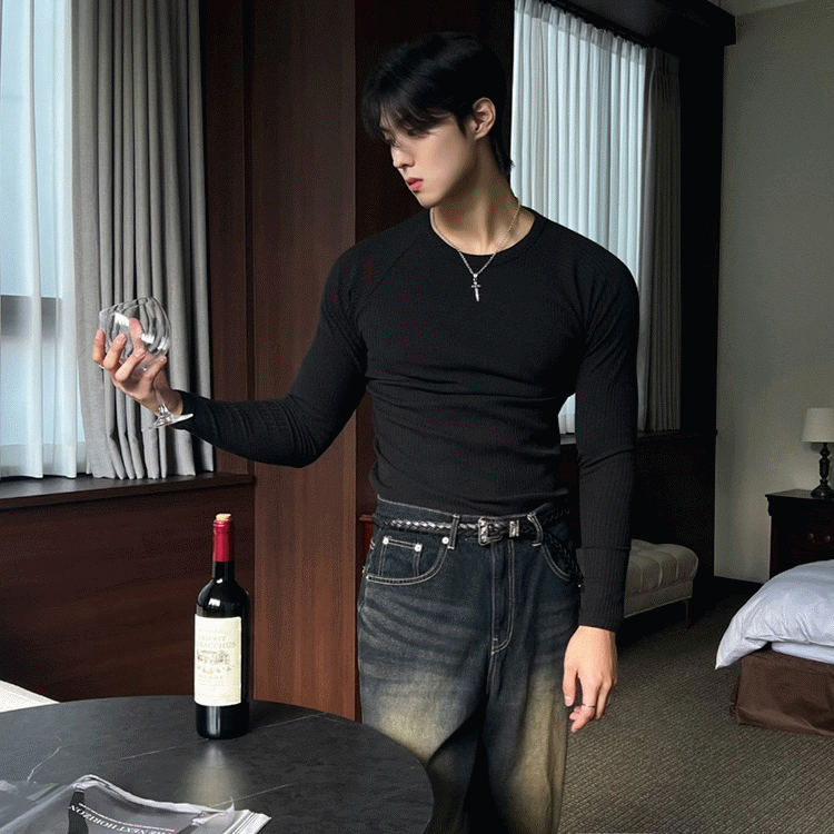 legoeduca坑条纹修身长袖T恤男士春季健身训练服韓版潮流显肌肉打底衫
