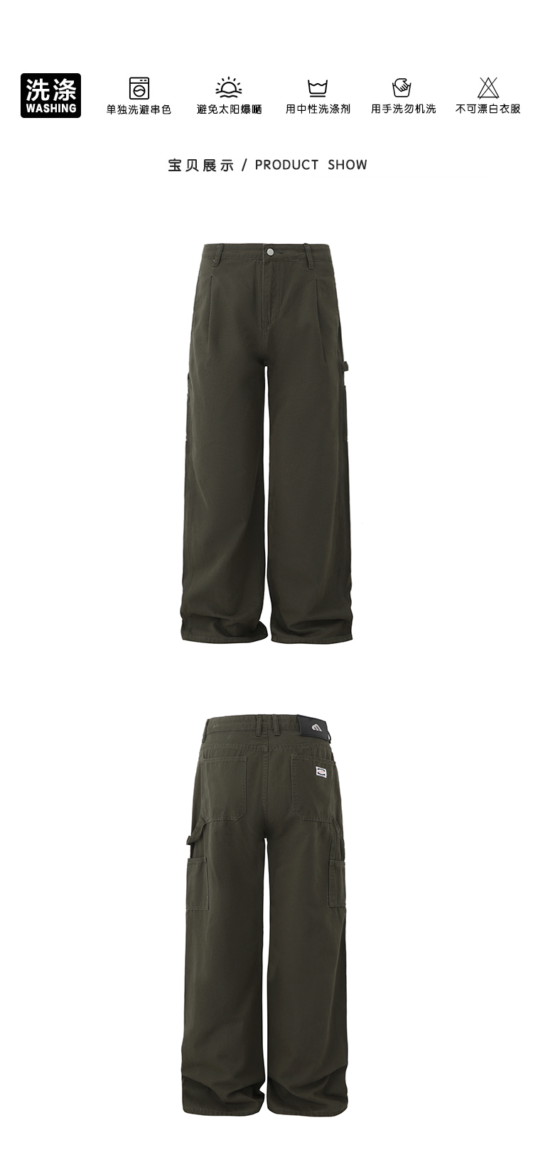legoeduca复古工裝休閒褲男夏季寬鬆直筒褲子韓系通勤风痞帅阔腿長褲