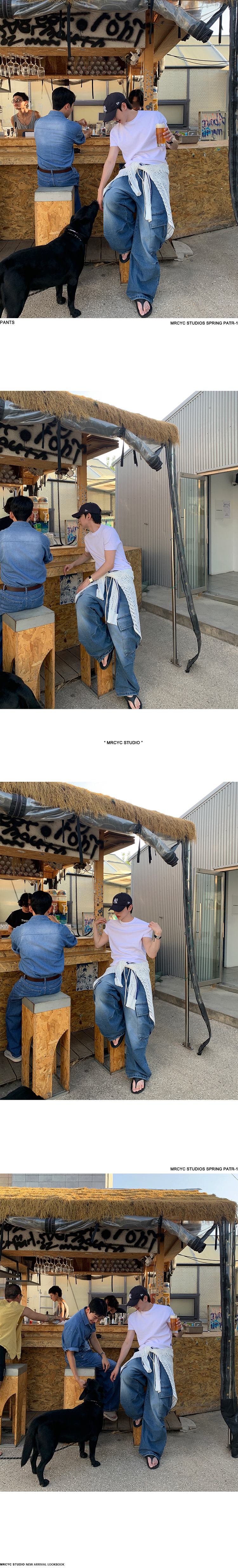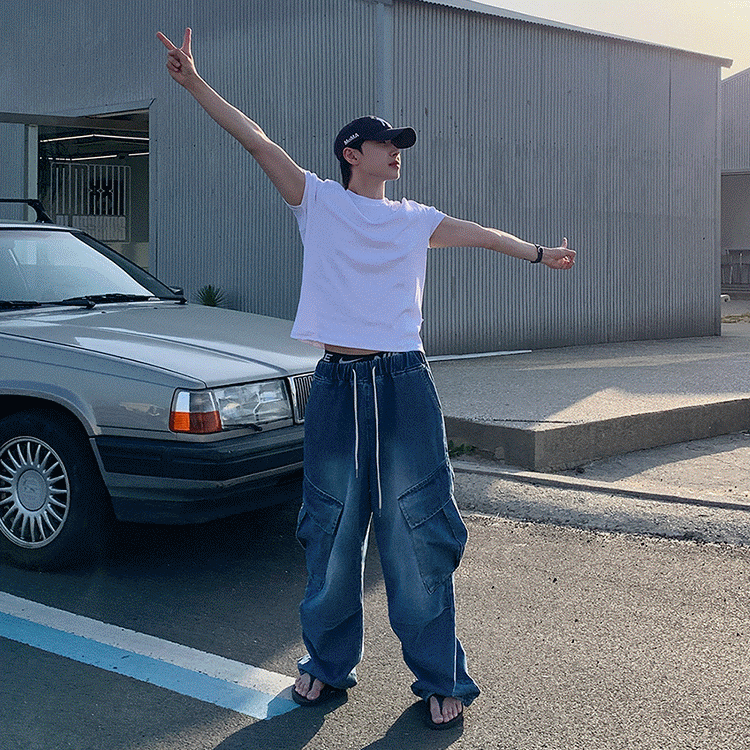 legoeduca复古水洗直筒牛仔褲男士夏季寬鬆休閒工裝褲韓版潮流拖地褲
