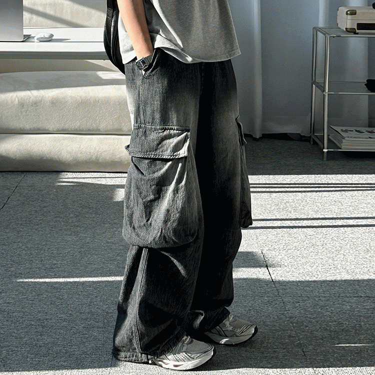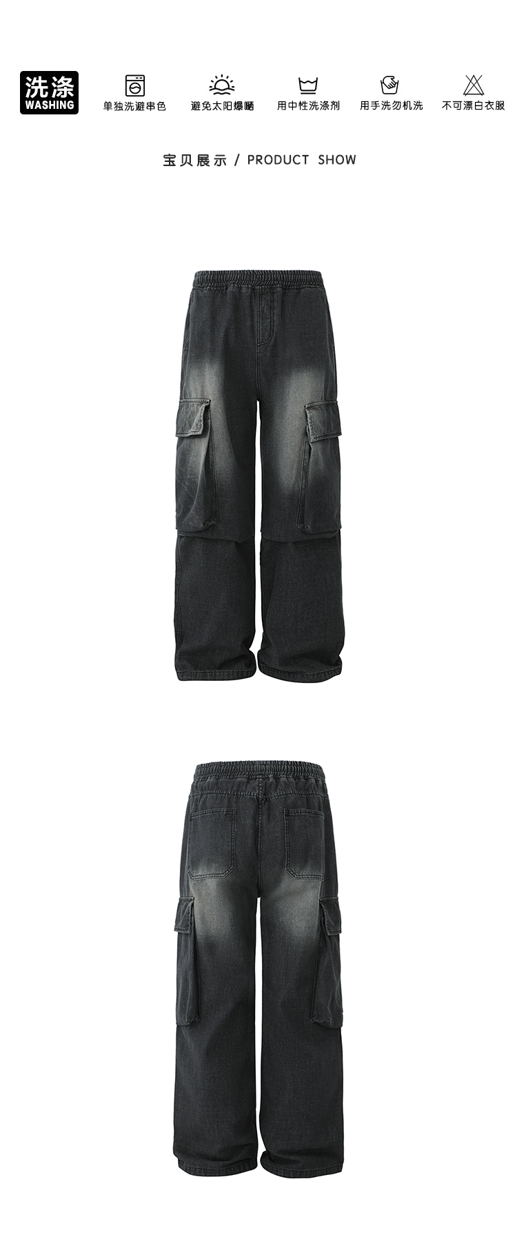 legoeduca复古水洗直筒牛仔褲男夏季寬鬆阔腿工裝褲子韓系通勤风穿搭