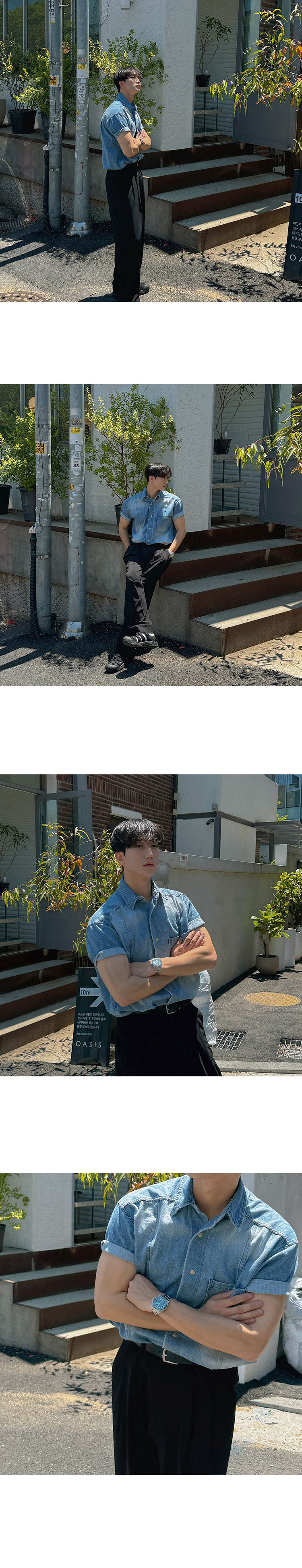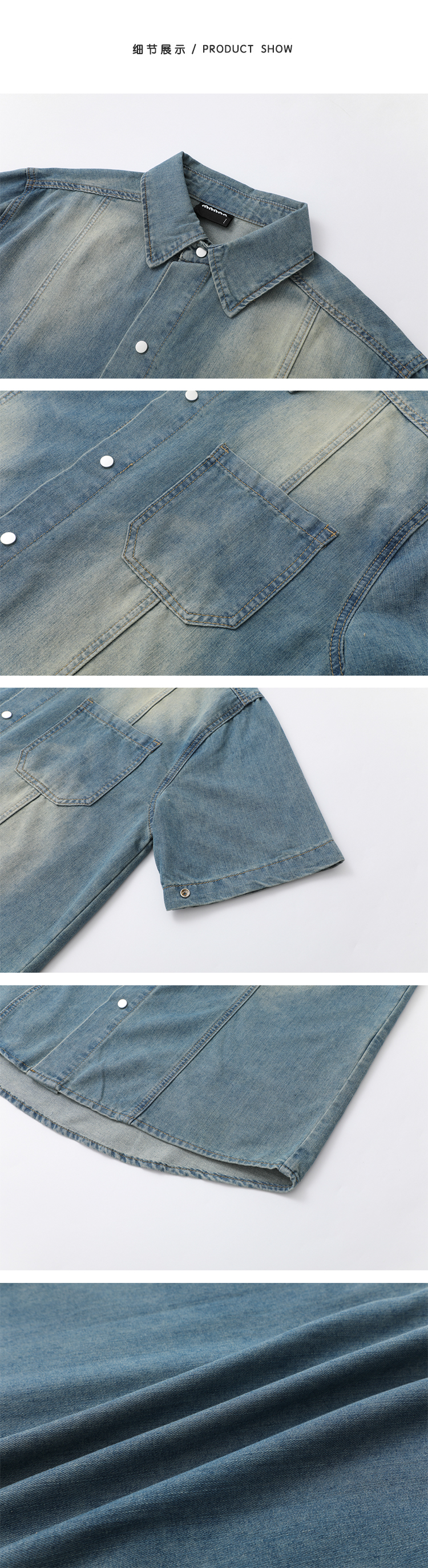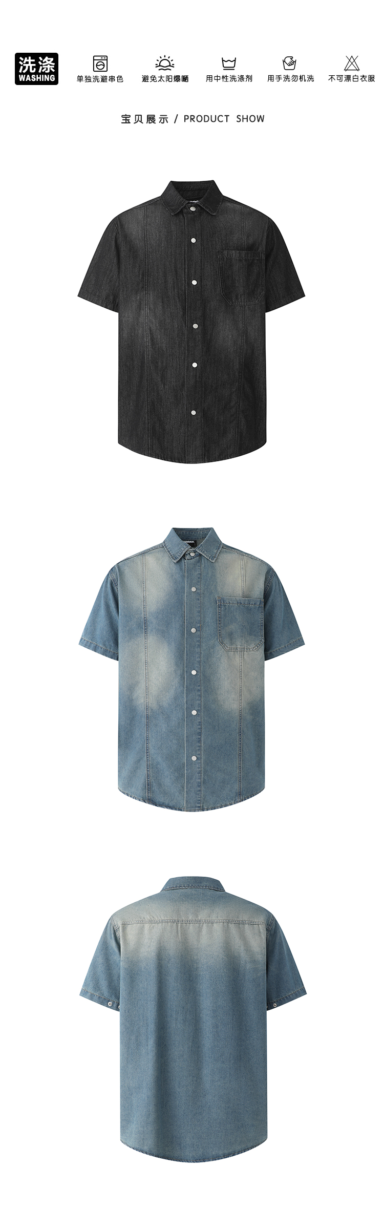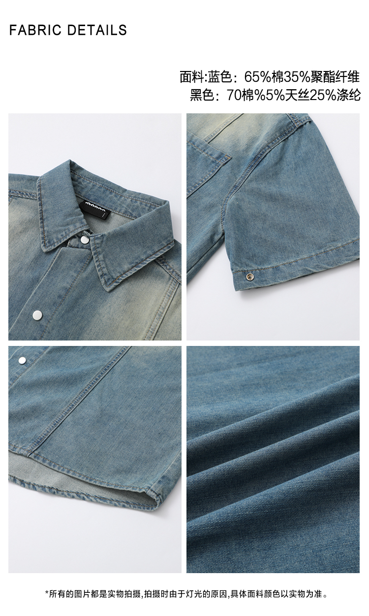 legoeduca复古水洗短袖衬衫男士夏季寬鬆休閒衬衣韓系小眾通勤穿搭潮