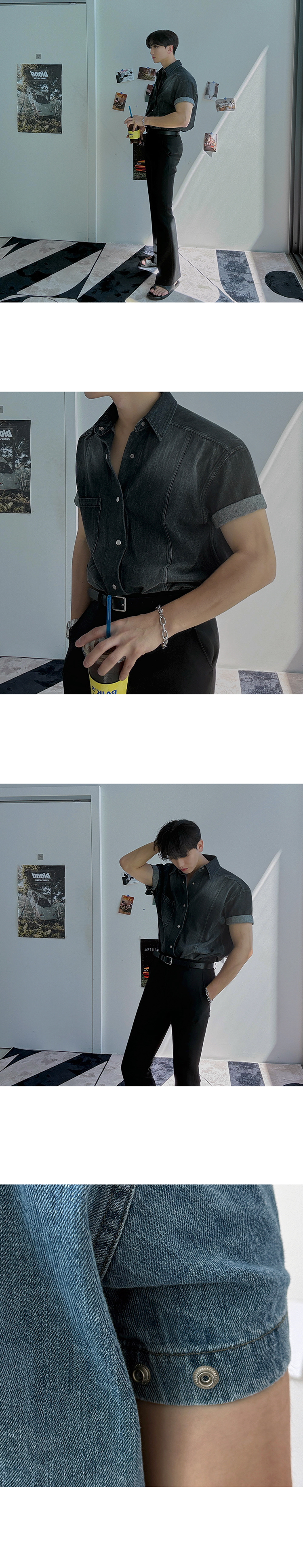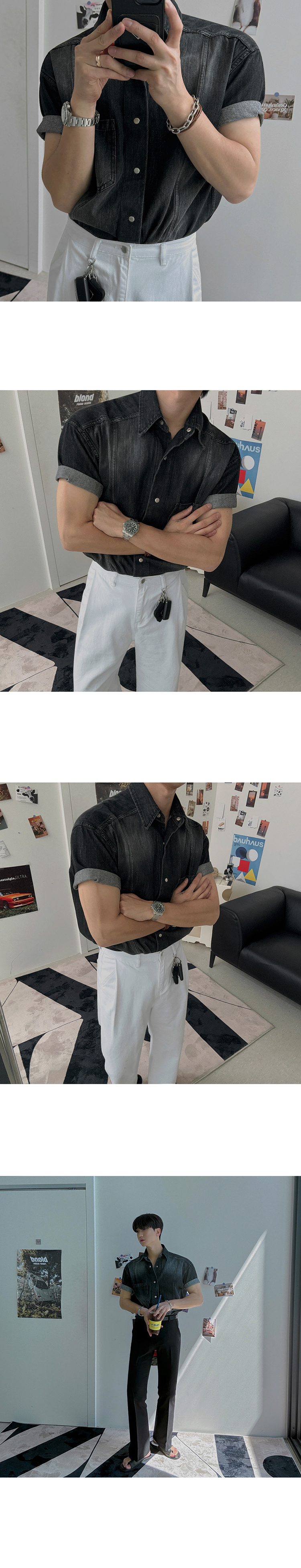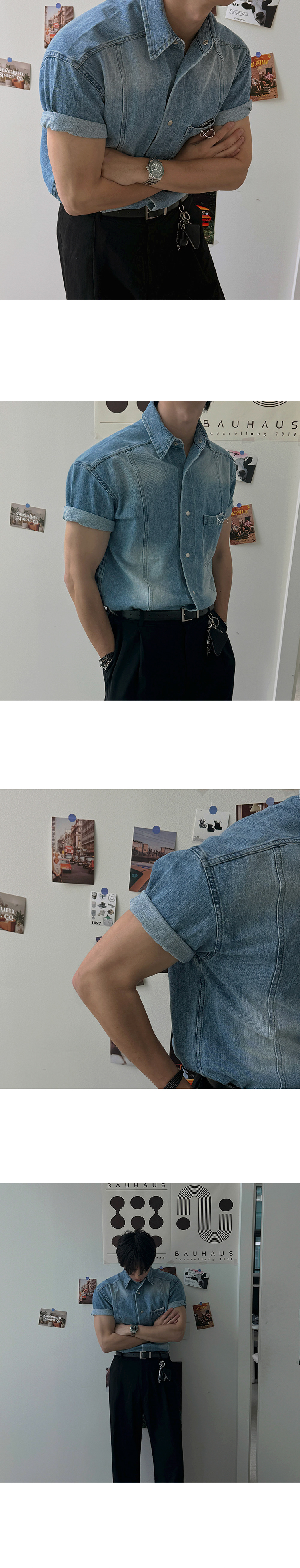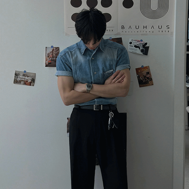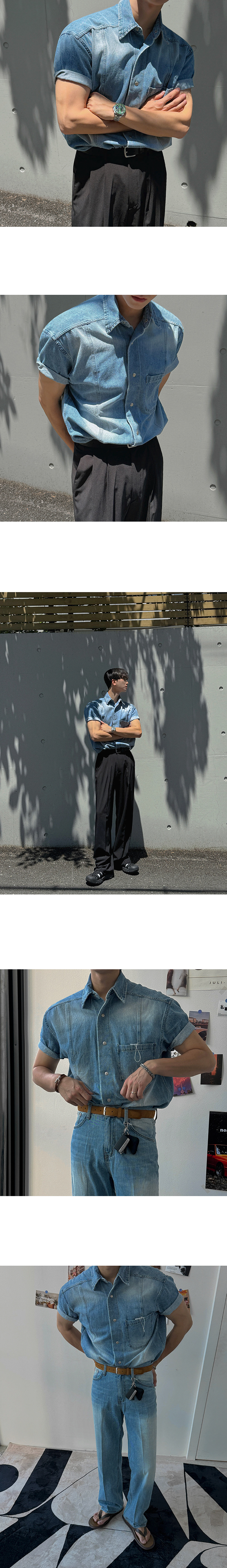 legoeduca复古水洗短袖衬衫男士夏季寬鬆休閒衬衣韓系小眾通勤穿搭潮
