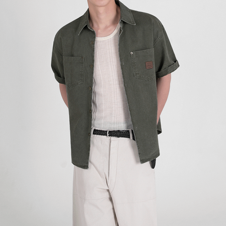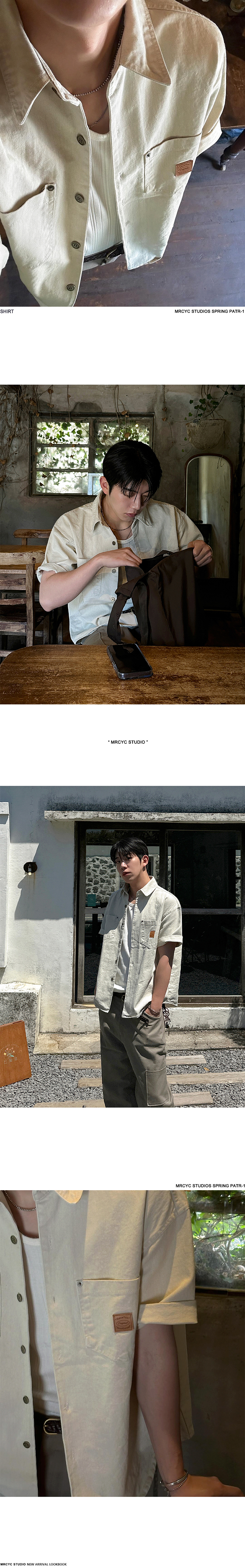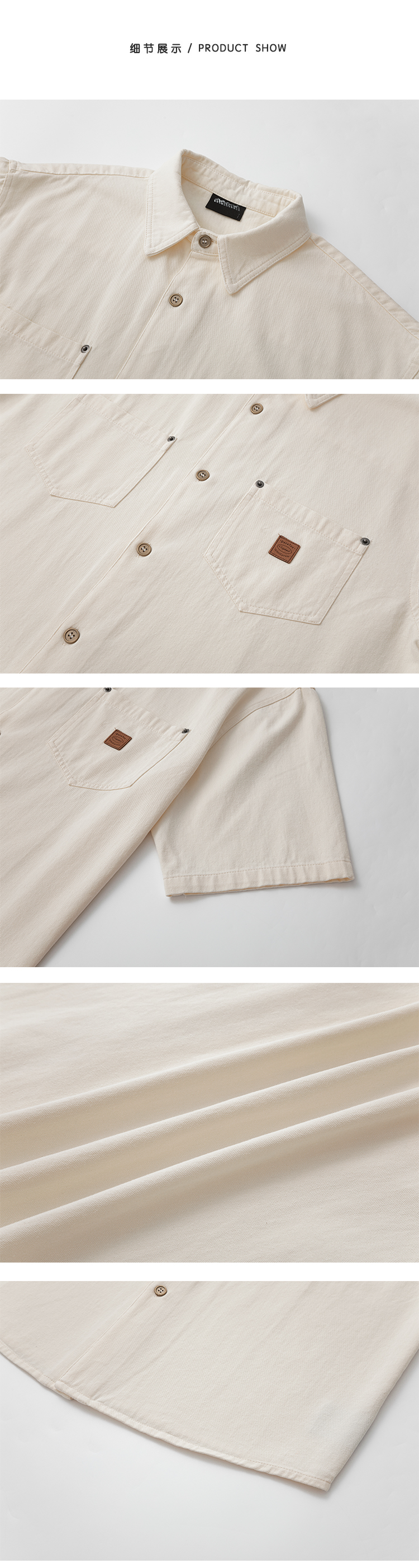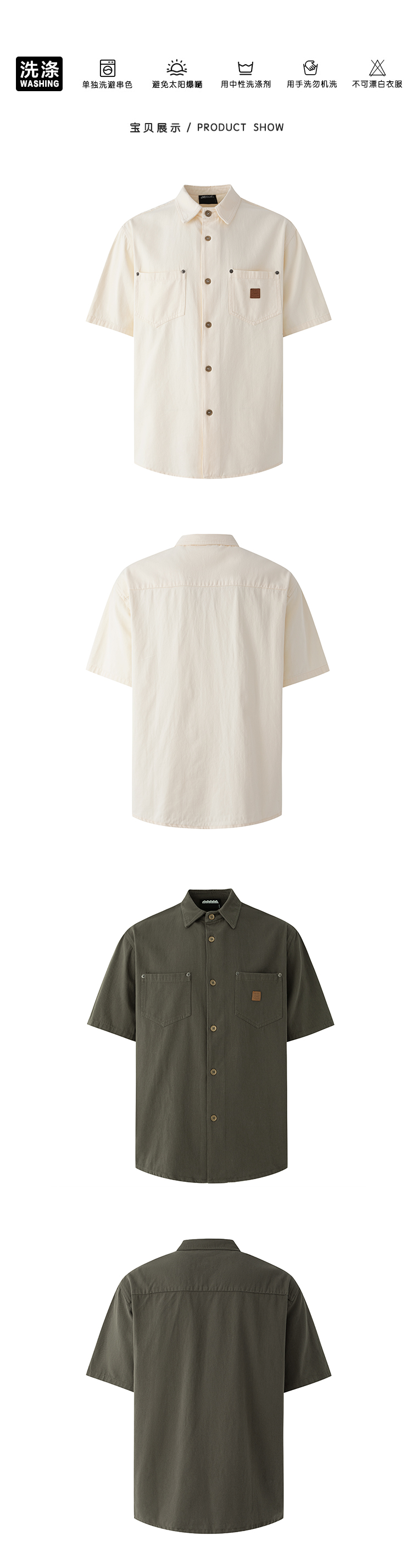 legoeduca复古风工裝短袖衬衫男士夏季寬鬆休閒衬衣韓系通勤薄款外套