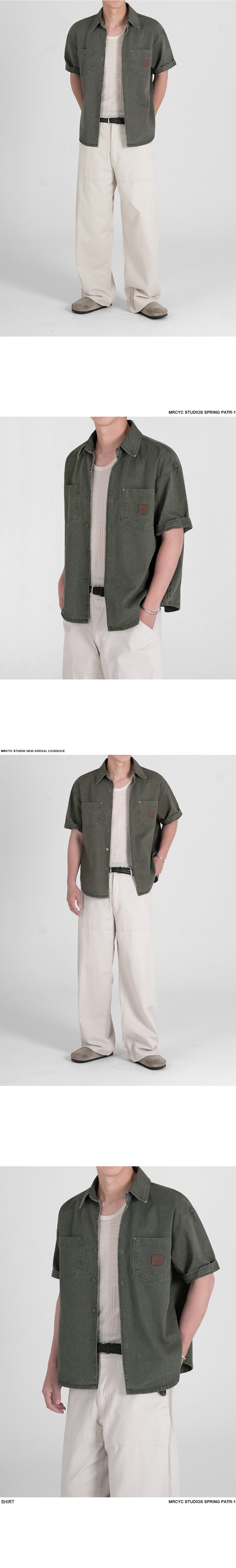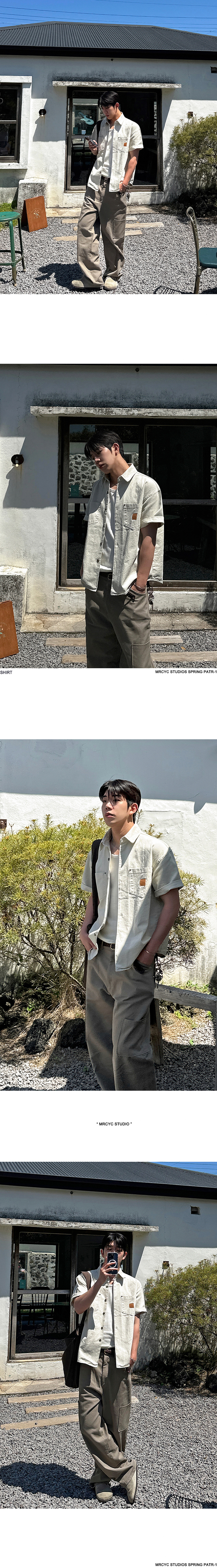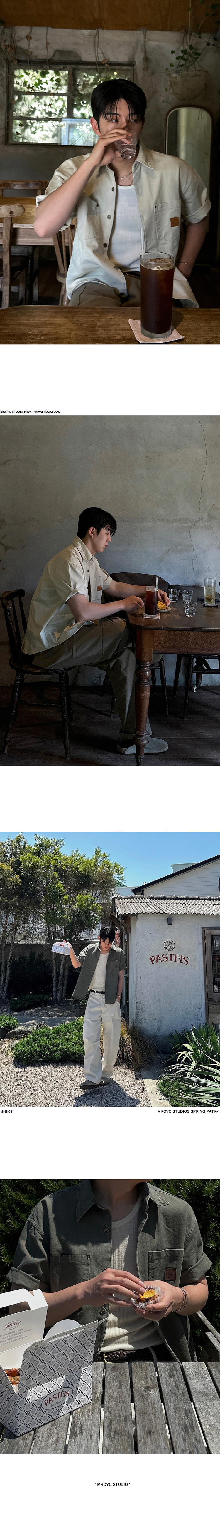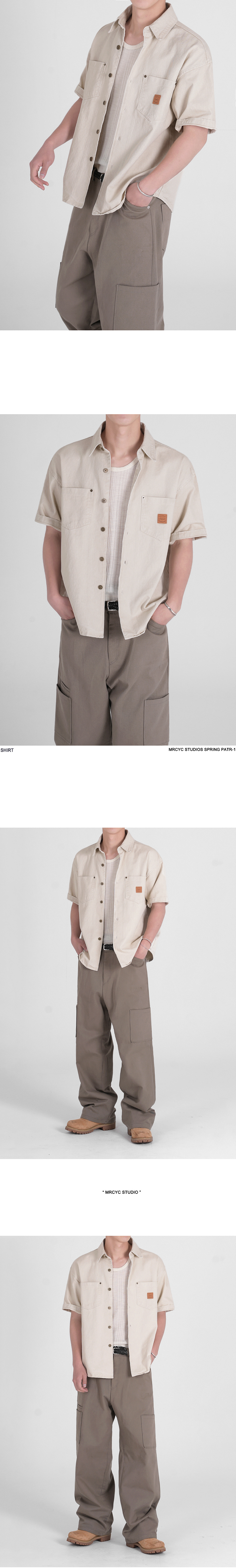 legoeduca复古风工裝短袖衬衫男士夏季寬鬆休閒衬衣韓系通勤薄款外套