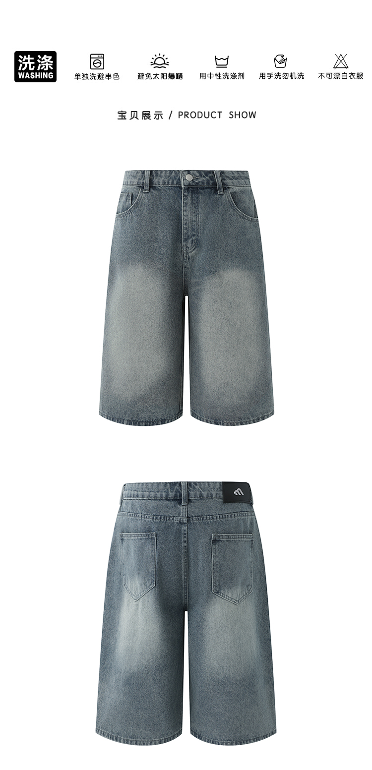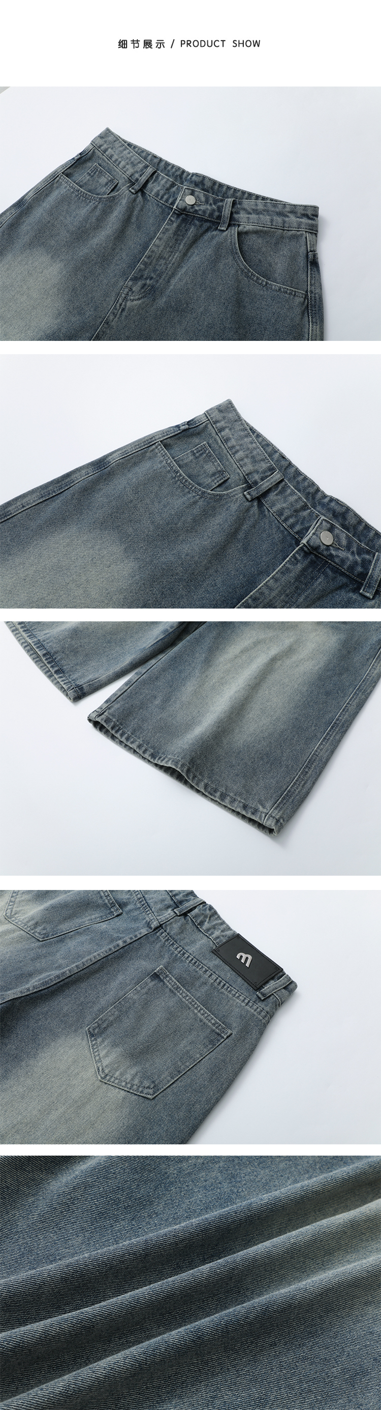 legoeduca复古风牛仔短褲男士夏季阔腿休閒七分褲韓系通勤风百搭褲子