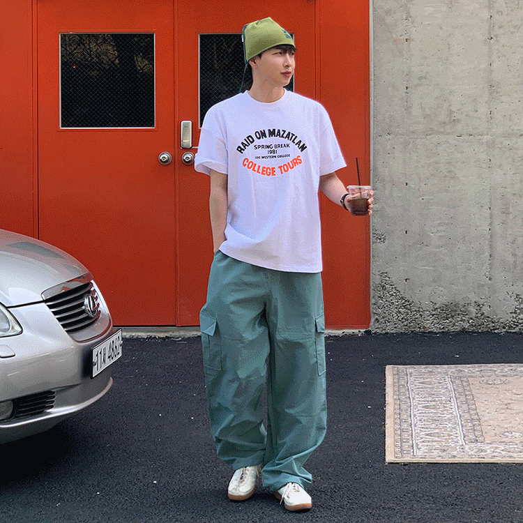 legoeduca字母印花短袖T恤男夏季寬鬆圆领五分袖体恤韓版潮流半袖上衣
