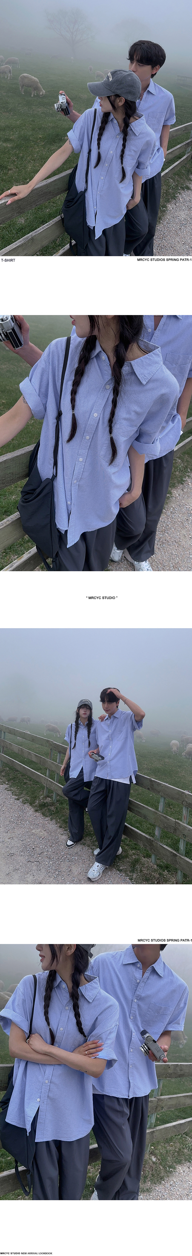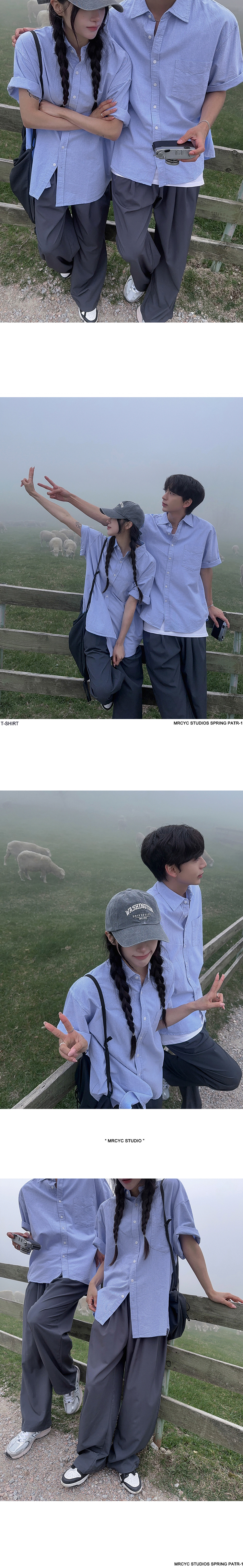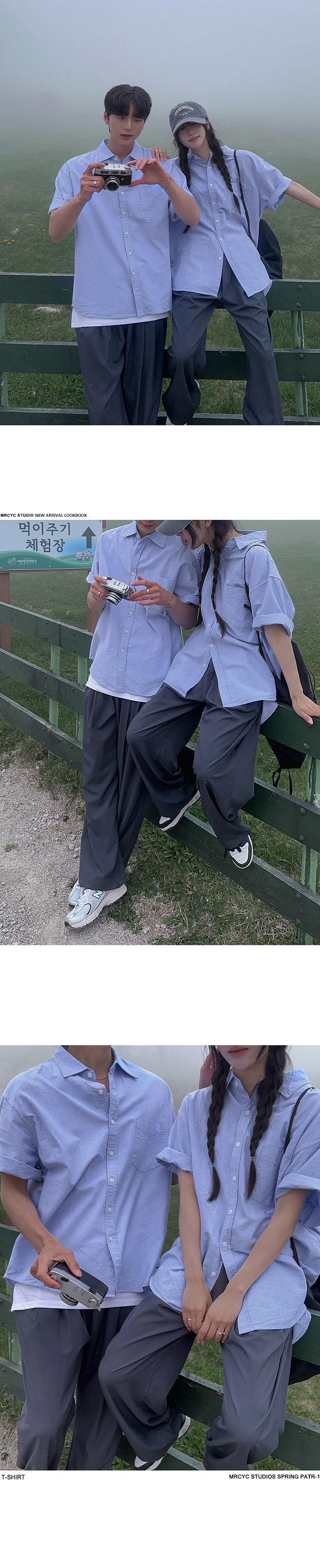 legoeduca日系簡約休閒衬衫男夏季寬鬆短袖衬衣韓版潮流情侣半袖上衣