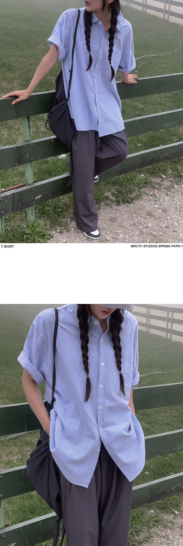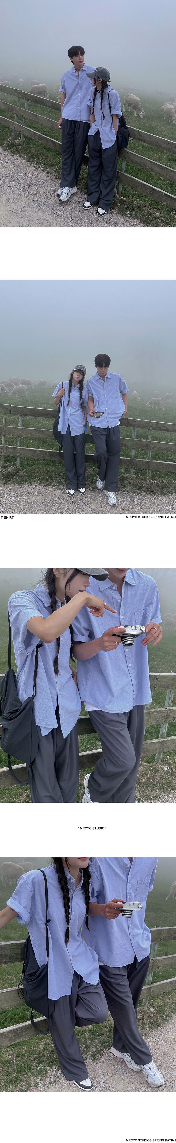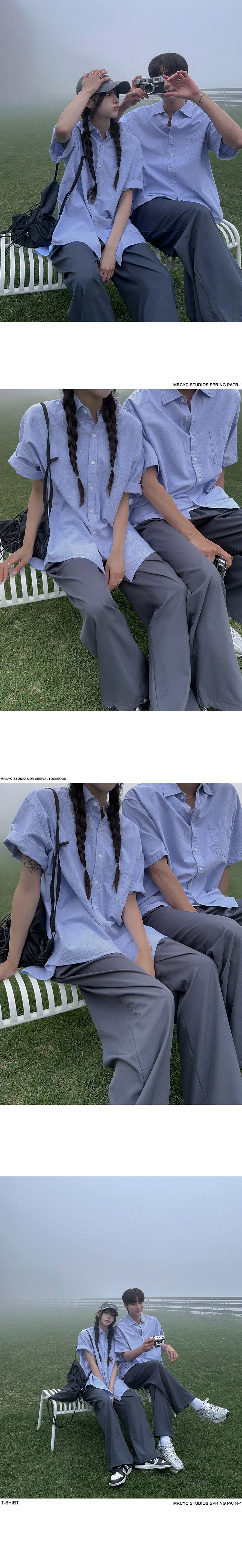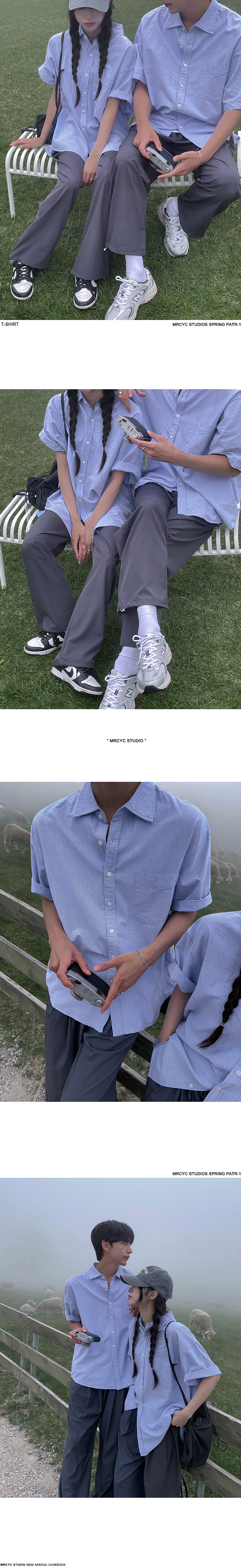 legoeduca日系簡約休閒衬衫男夏季寬鬆短袖衬衣韓版潮流情侣半袖上衣