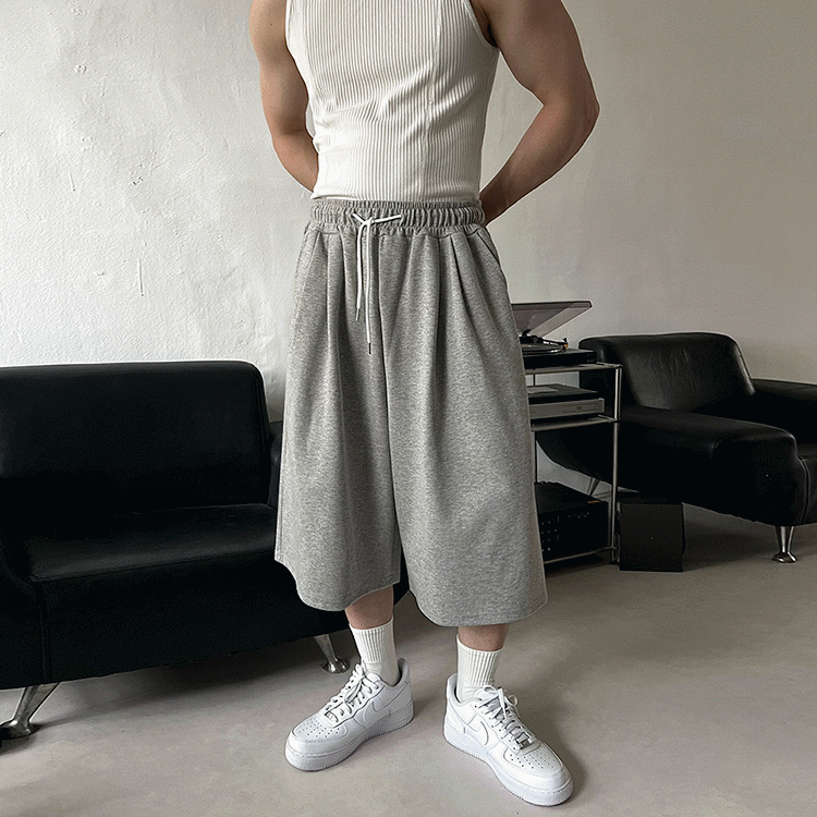 legoeduca灰色運動七分卫褲男士夏季寬鬆休閒短褲子韓系松弛感穿搭潮