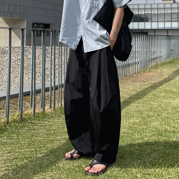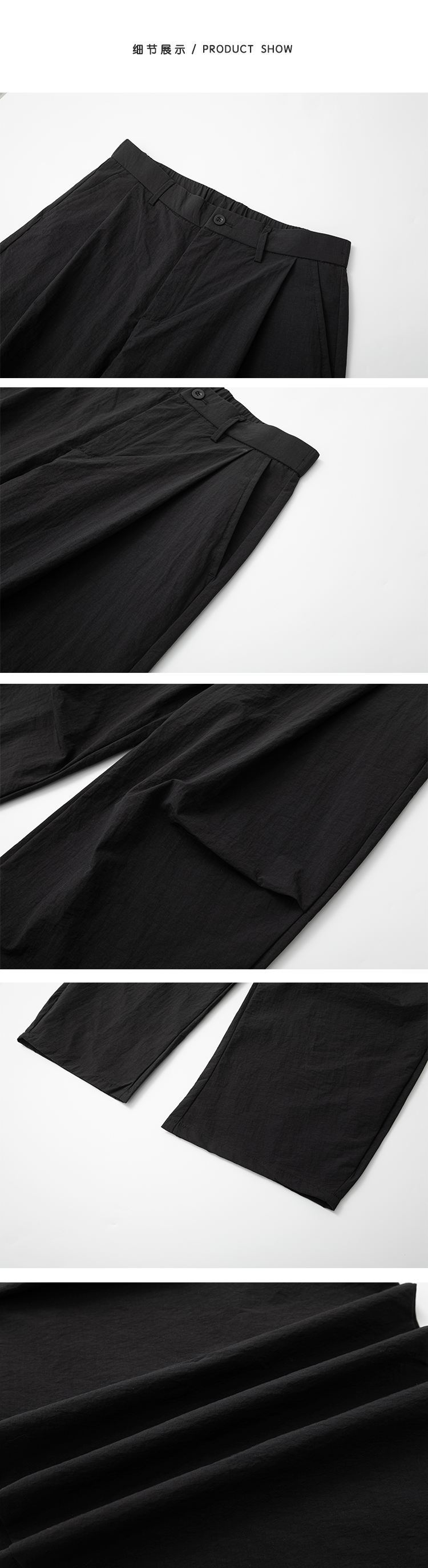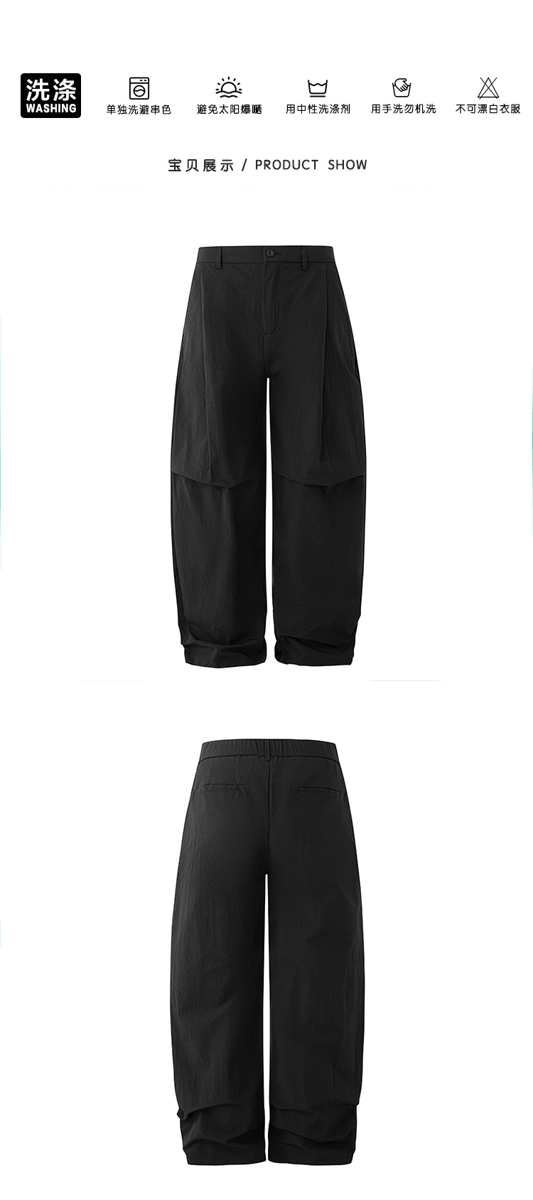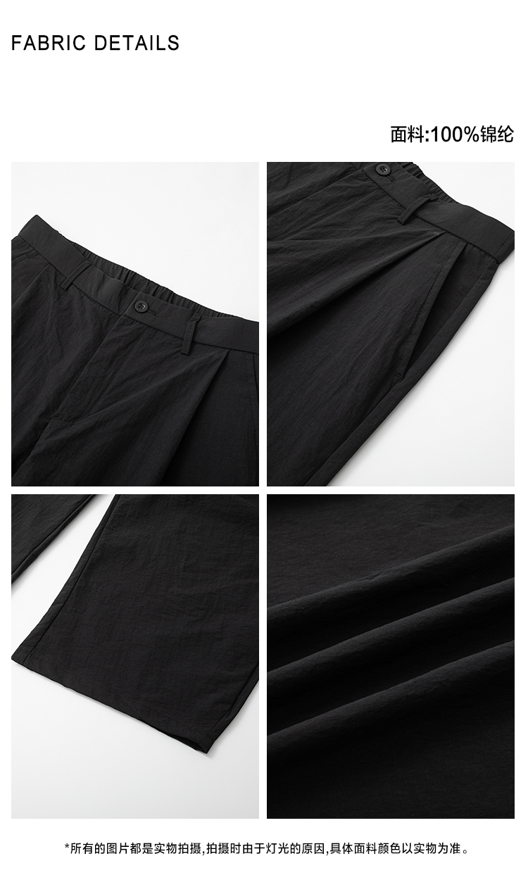 legoeduca痞帅黑色阔腿褲男士夏季直筒休閒褲子韓系通勤风坠感拖地褲
